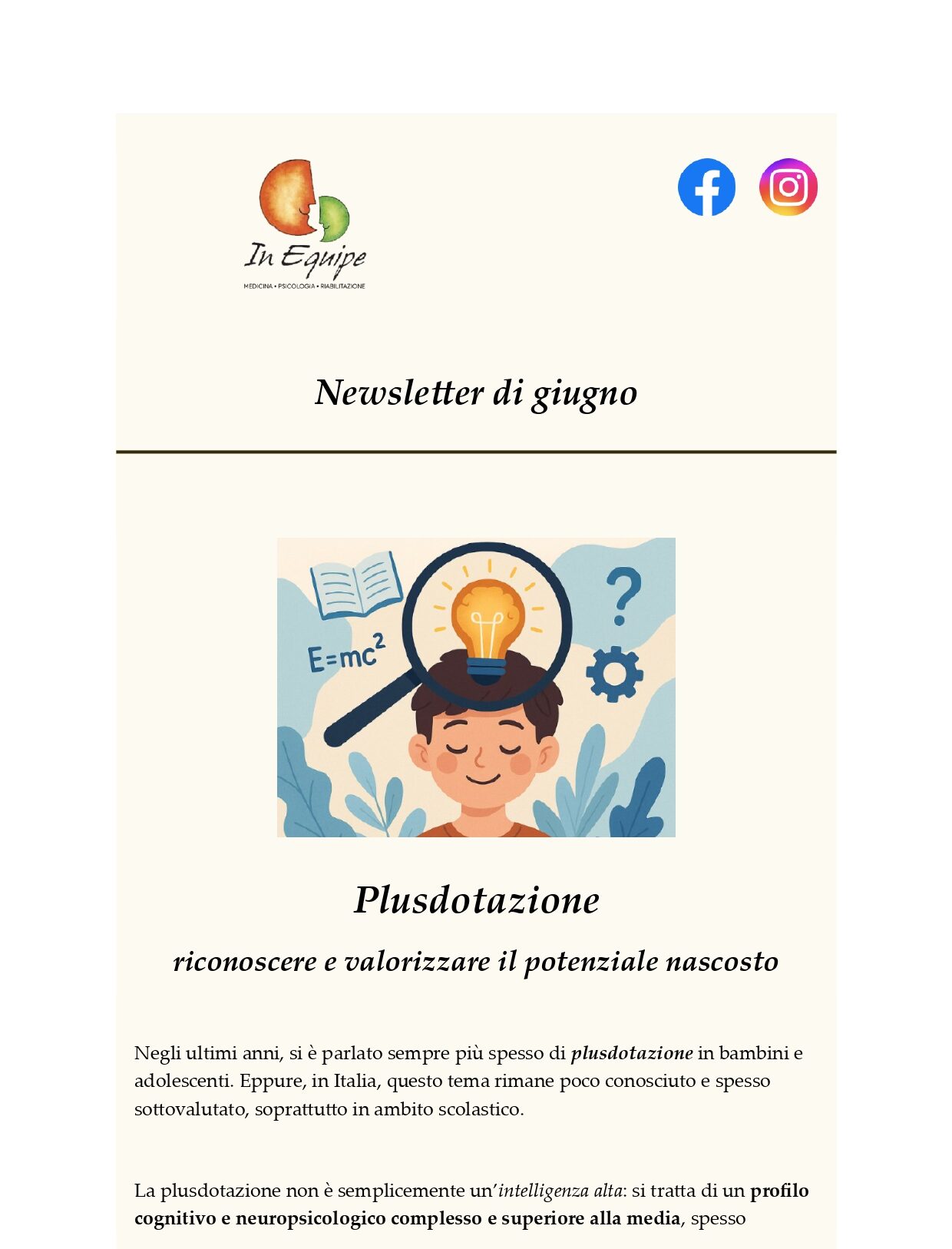 Newsletter 27/06/2025 “Plusdotazione – Riconoscere e valorizzare il talento nascosto”